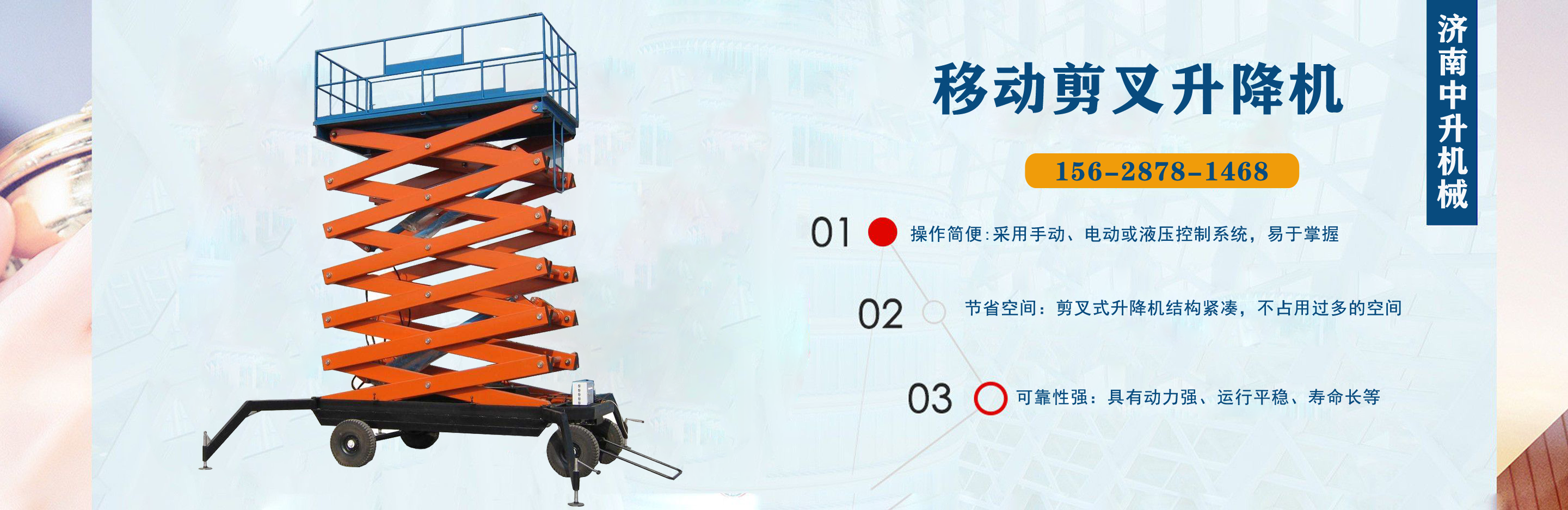 濟(jì)南中升機(jī)械制造有限公司主營(yíng)移動(dòng)升降機(jī),小型移動(dòng)升降機(jī),移動(dòng)式升降機(jī),移動(dòng)剪叉升降機(jī),移動(dòng)剪叉式升降機(jī)等產(chǎn)品,信譽(yù)良好,歡迎前來咨詢訂購(gòu)! 在銷售上,尊重每一個(gè)客戶,做到保質(zhì)、保量及時(shí)供貨;在售后服務(wù)上,以較短的時(shí)間,用較快的速度解決,終身追蹤服務(wù)。 公司始終以“品質(zhì)為本,服務(wù)至上”為公司宗旨。致力于提供高品質(zhì)的產(chǎn)品,完善的服務(wù),快捷的供貨,無論您身處何方,都能感受到我們的優(yōu)良服務(wù)。客戶至上,誠(chéng)信為本。 歡迎各界朋友來電,來函垂詢,選購(gòu)!...